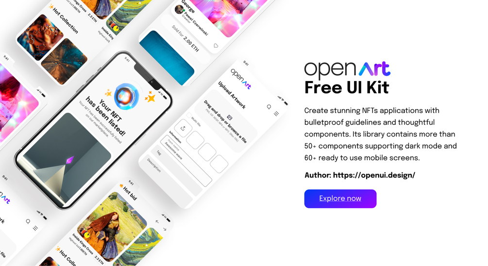 Create stunning NFTs applications with bulletproof guidelines and thoughtful components. Its library contains more than 50+ components supporting Dark Mode and 60+ ready to use mobile screens.